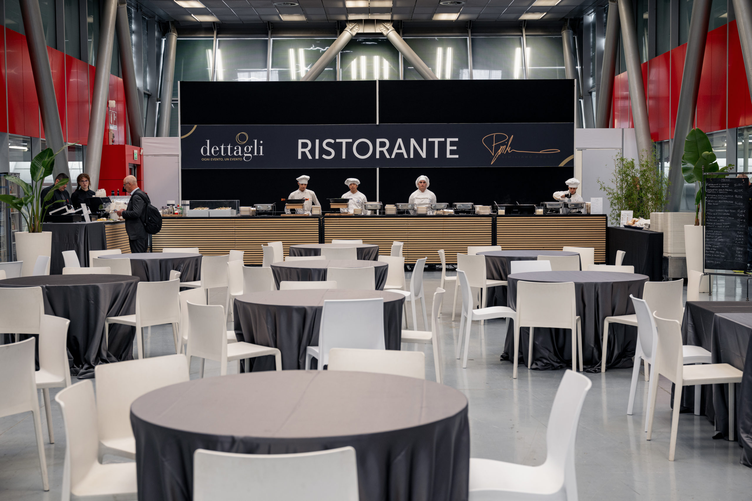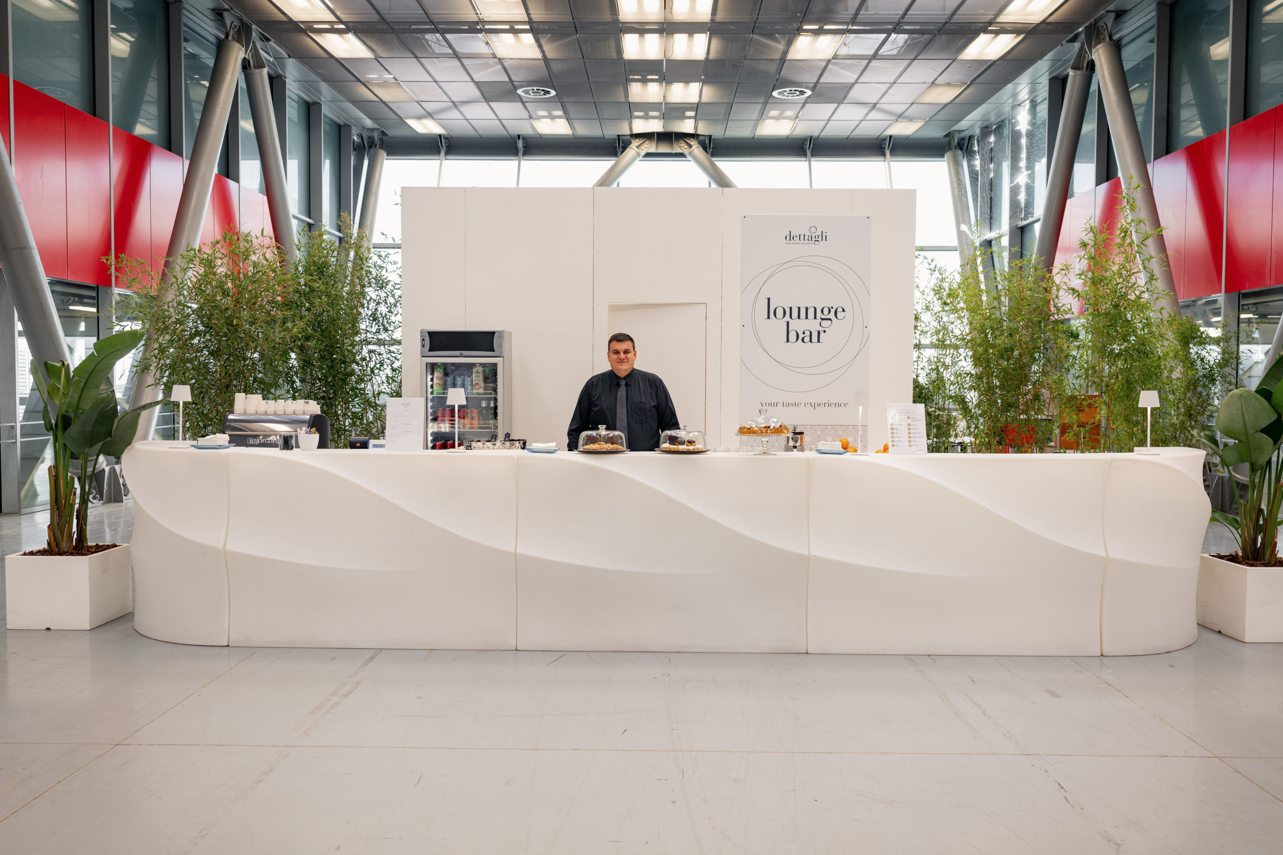 Infine, nel cuore del quadriportico, la nostra lounge con servizio caffetteria è rimasta attiva dal momento colazione fino all’aperitivo, offrendo un punto d’incontro informale e dinamico, ideale per un break di qualità tra un appuntamento e l’altro.